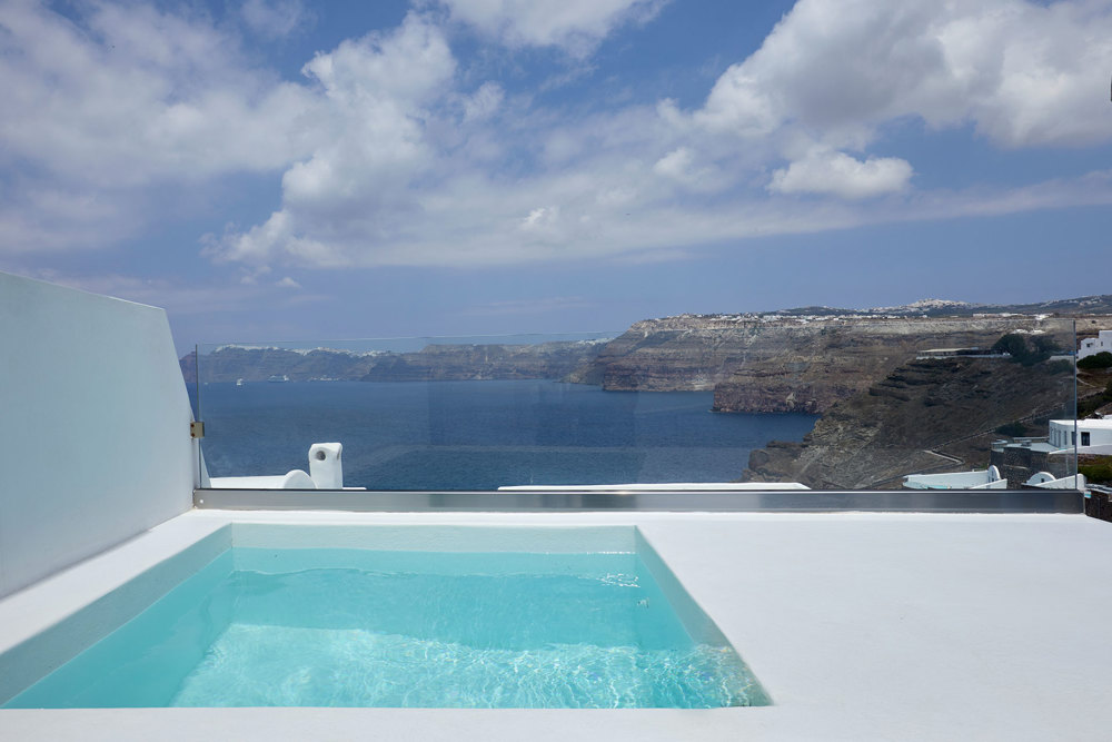 Our Deluxe Double Rooms with Panoramic Caldera View & Hot Tub offer a sanctuary of comfort with stunning views for a top-notch experience. In-room amenities include a plush king-size bed, air conditioning, satellite TV, hairdryer, bathrobes, slippers, Nespresso coffee machine and mini-fridge, accommodating comfortably up to 2 guests. The main highlight is the gorgeous private balcony, featuring a luxurious hot tub to enjoy the breathtaking scenery while soaking in. Whether you are looking for a romantic getaway or a cozy escape, it is the premium option for unforgettable vacations in Akrotiri.