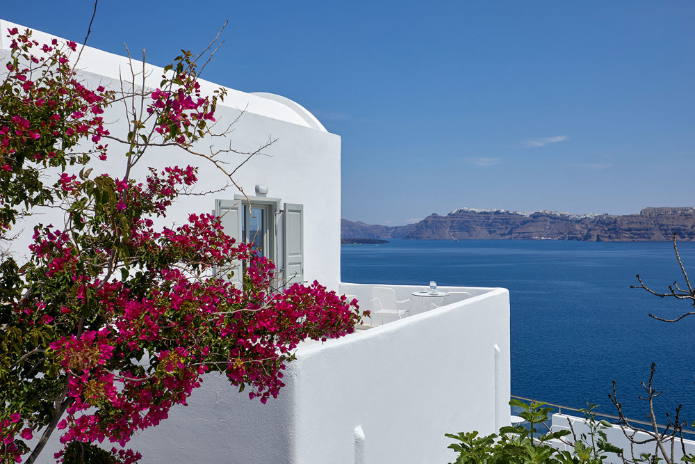 Elegant design and a relaxed atmosphere meet in our Junior Suites with Sea View for a comfortable yet unforgettable experience. Providing a two-story retreat, it accommodates up to 3 guests comfortably with a plush king-size bed and a cozy sofa bed with a window to the amazing views of the Aegean Sea. Your coastal escape comes complete with amenities such as air conditioning, satellite TV, a hairdryer, a Nespresso coffee machine and a mini-fridge to enhance your stay. Experience the Santorini blue by embracing the beautiful sea views from the furnished private balcony.