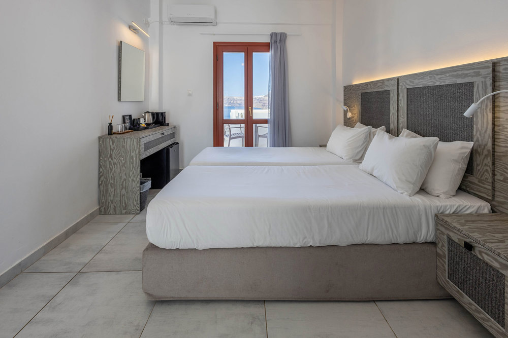Combine stunning Aegean views with seaside coziness in our Standard Rooms with Balcony & Sea View. Accommodating up to 2 persons comfortably with either a king-size or twin beds, guests can unwind in peace with amenities such as air-conditioning, satellite TV, a hairdryer, a kettle and a mini-fridge along with gazing at the infinite blue from the private balcony.